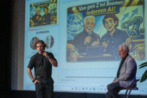 Vervolgens nam het sprekersduo Wouter de Vries en Sonny de Leeuw het publiek mee in de wereld van AI. In een inspirerende en toegankelijke presentatie maakten zij duidelijk wat AI is, welke tools beschikbaar zijn en hoe deze direct toepasbaar zijn in de praktijk. De combinatie van Sonny’s jonge, innovatieve blik en Wouters jarenlange ervaring in marketing en organisatievraagstukken bleek bijzonder krachtig. Samen lieten zij zien dat AI niet alleen toekomstmuziek is, maar juist nú al concrete kansen biedt voor taxateurs.