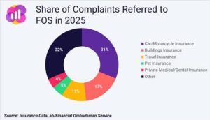 Autoverzekeringen blijven het meest beklaagde bedrijfsonderdeel in de Britse schadeverzekeringsmarkt, volgens de nieuwste analyse van klachtengegevens van de Financial Ombudsman Service (FOS) door marktonderzoeksbureau Insurance DataLab,