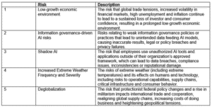 Het rapport over het derde kwartaal van 2025, dat is gebaseerd op een enquête onder 184 senior risicomanagers en assurance-executives, bracht ook aan het licht dat de bezorgdheid over kunstmatige intelligentie (AI) toeneemt. Risico’s op het gebied van informatiebeheer in verband met AI zijn gestegen in de ranglijst, van de vierde plaats in 2Q25 naar de tweede plaats in 3Q25, en schaduw-AI is gestegen van de vijfde naar de derde plaats, omdat organisaties moeite hebben om het gebruik ervan effectief te monitoren (zie tabel 1).